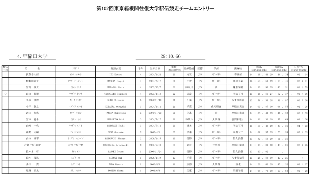 早稲田大学チームに、洛北74期、多田真さん(1年)がエントリーされました。